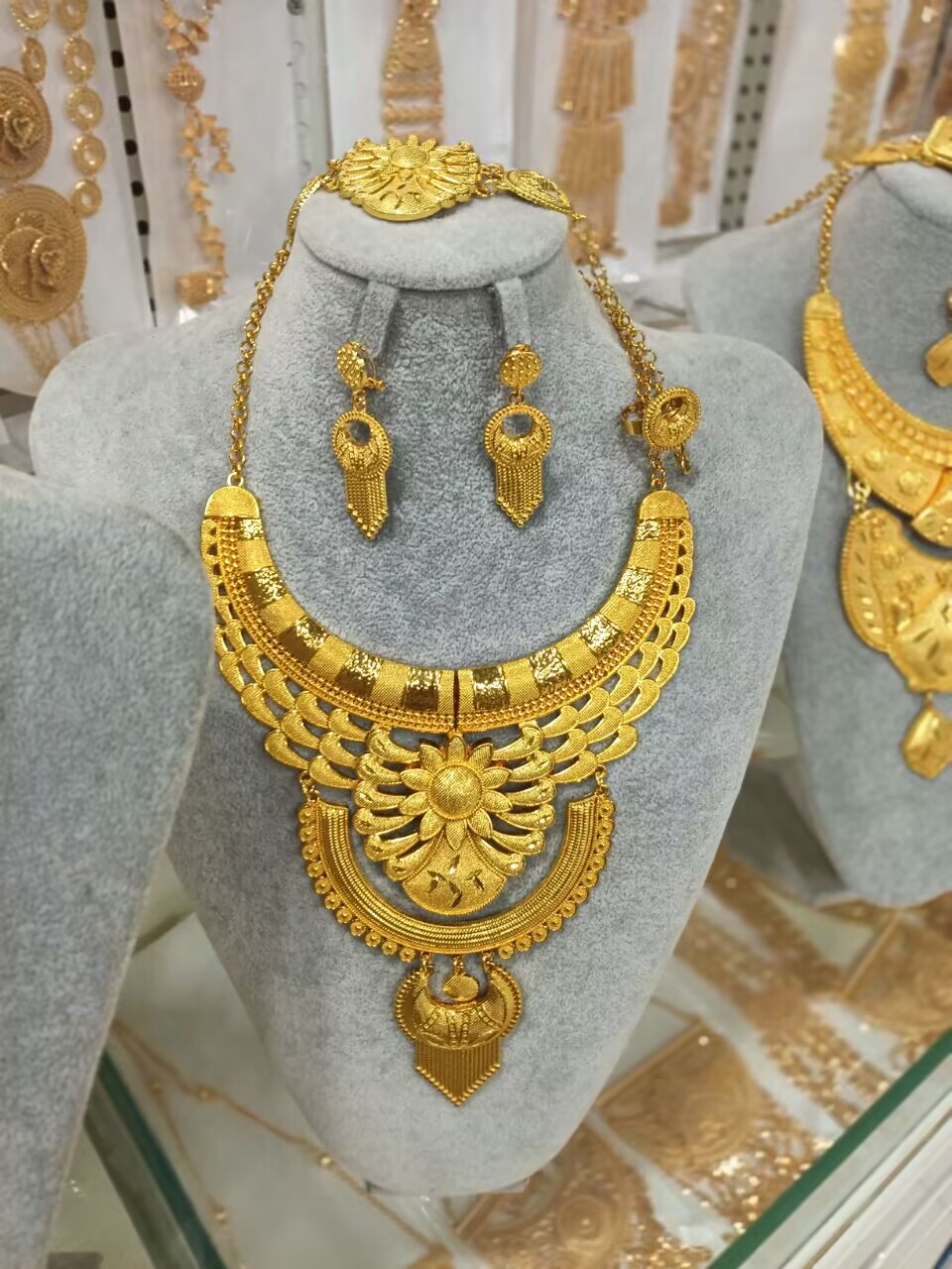 – **Cultural Heritage**: Unlike many mass-produced sets, this one draws on Bahrain’s rich pearl-diving and gold-working history, giving it a unique story and meaning. Brides who wear it aren’t just wearing jewelry—they’re wearing a piece of a country’s cultural legacy.