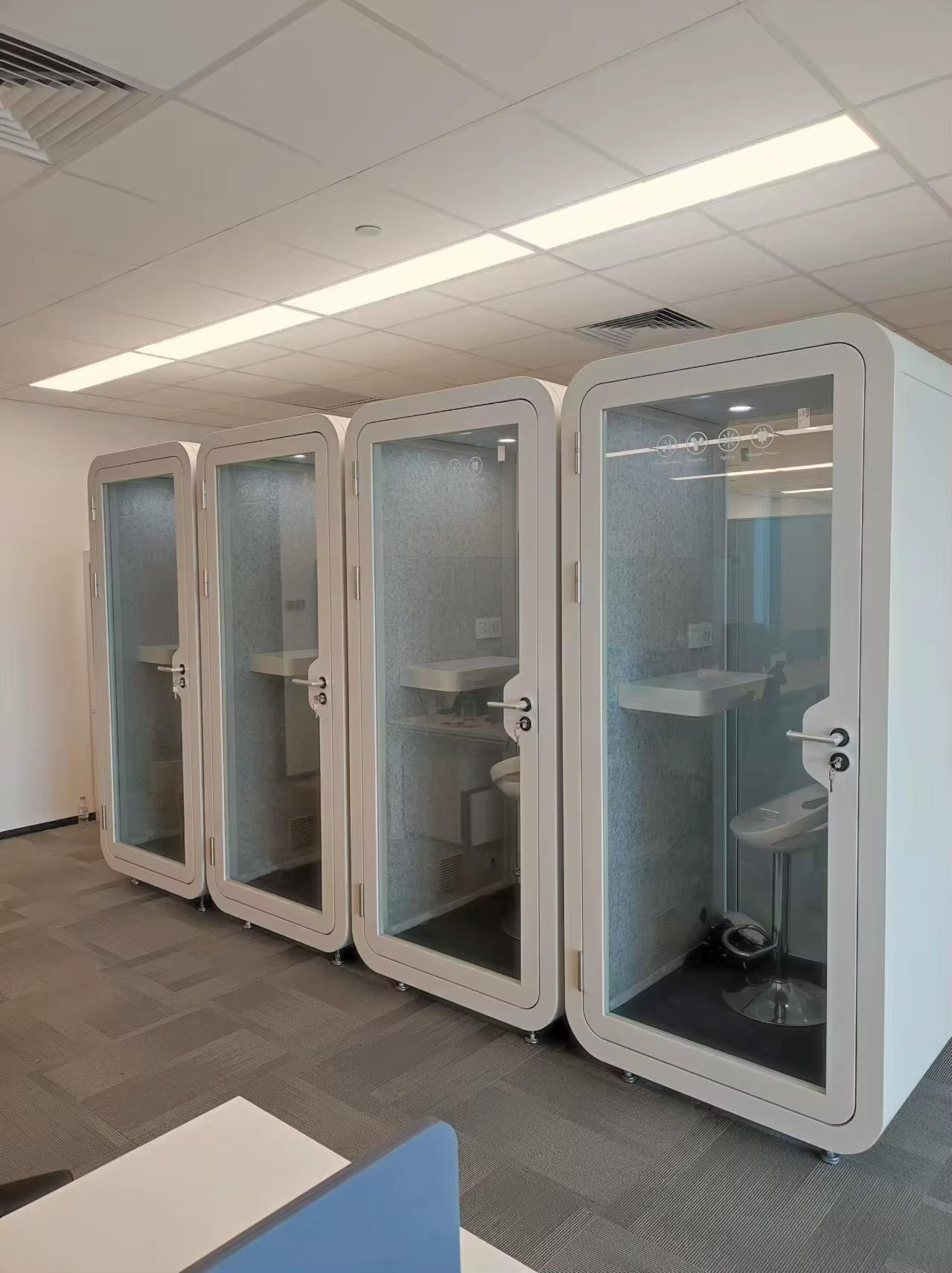 • 遮音性能(STC/Rw): $Rw + Ctr 30dB \pm 5dB$。搾乳機のモーター音が外部に漏れるのを防ぎ、同時に外部のオフィスの騒音を遮断して、リラックスできる静寂を提供します。