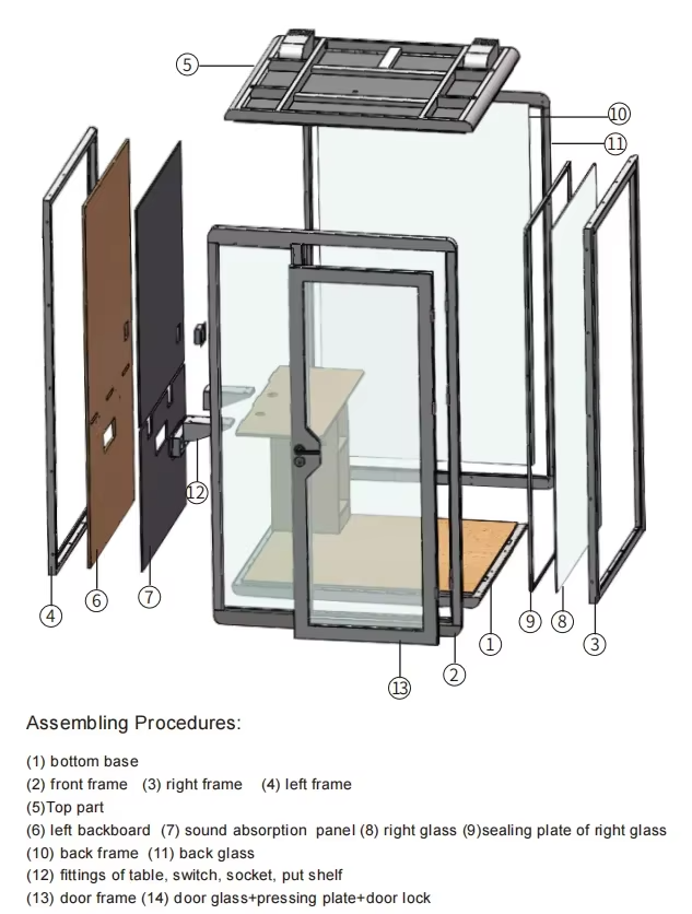 1. Sサイズ(Phone Booth): W1,000 × D1,000 × H2,250mm(1人用)